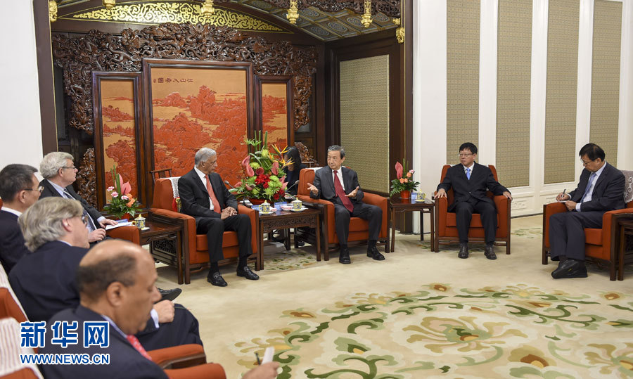 ?? 9月22日,中國國務院副總理馬凱在北京中南海紫光閣會見巴基斯坦前總理肖卡特·阿齊茲等參加中投公司國際咨詢委員會會議的委員。 新華社記者謝環馳 攝