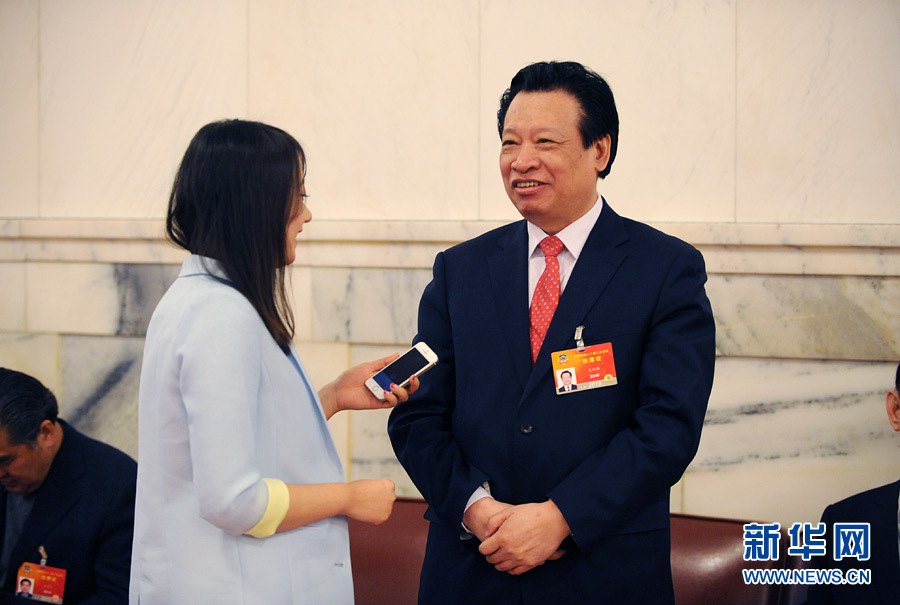 ???? 2015年3月11日,全國政協十二屆三次會議舉行第四次全體會議,多名政協委員就有關議題作大會發言。圖為,全國政協經濟委員會副主任、國家能源局原局長吳新雄接受新華網記者采訪。新華網 翟子赫攝
