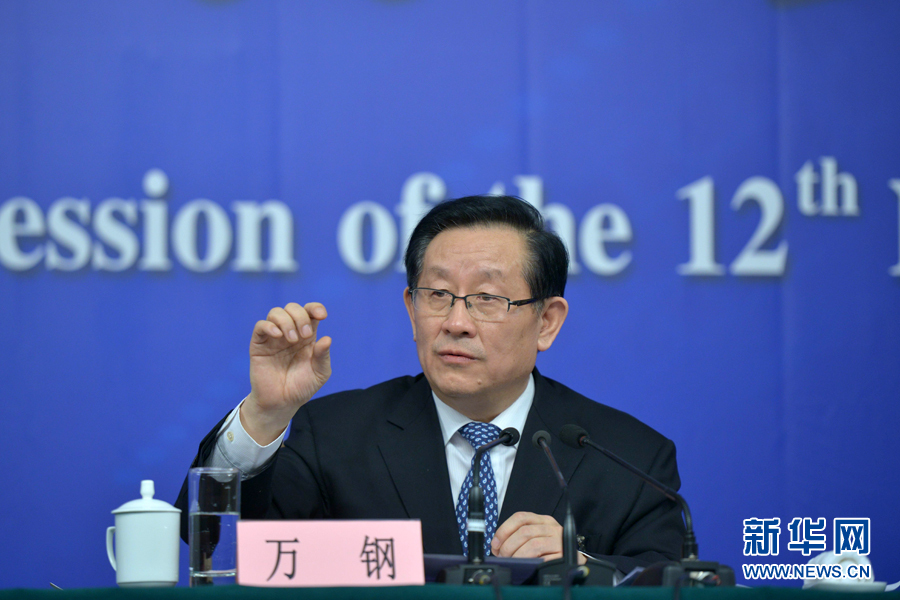 十二屆全國人大三次會議新聞中心于3月11日10時45分舉行記者會,邀請科技部部長萬鋼就科技改革與發(fā)展回答中外記者提問。圖為萬鋼回答記者提問。新華網/中國政府網 郭小天 攝