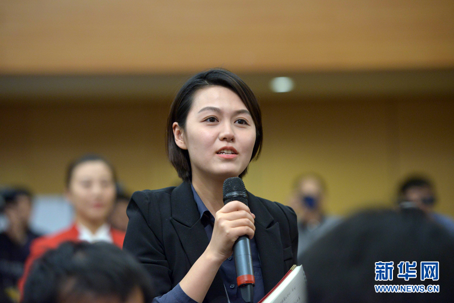 ??? 十二屆全國人大三次會議新聞中心于3月11日10時45分舉行記者會,邀請科技部部長萬鋼就科技改革與發展回答中外記者提問。圖為中央電視臺記者提問。新華網/中國政府網 郭小天 攝