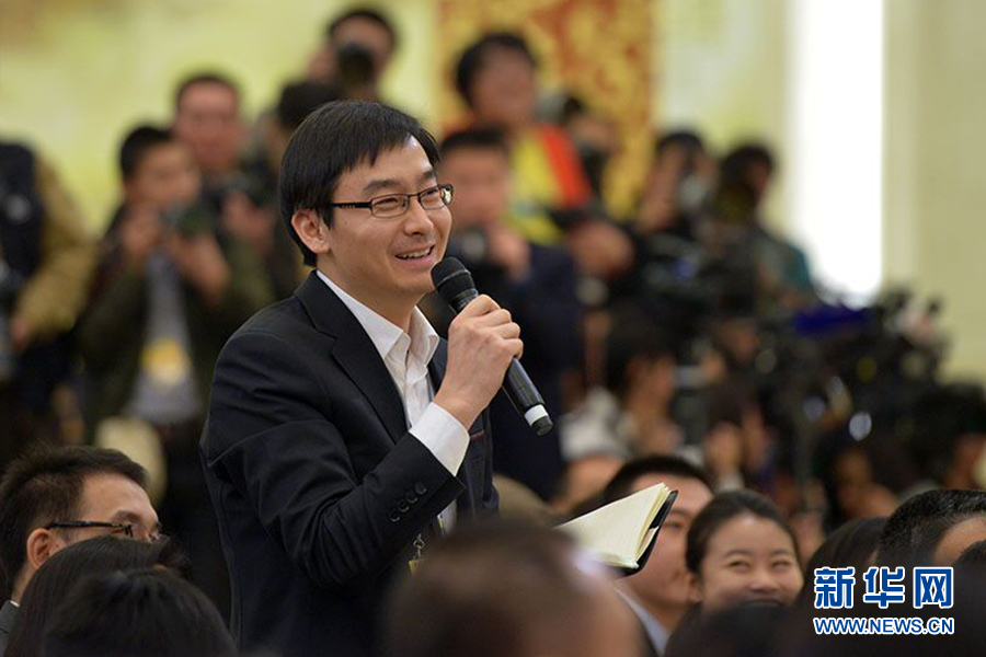 ????3月15日,國務院總理李克強在人民大會堂三樓金色大廳會見采訪十二屆全國人大三次會議的中外記者并回答記者提出的問題。圖為人民日報記者提問。新華網/中國政府網?郭小天 攝