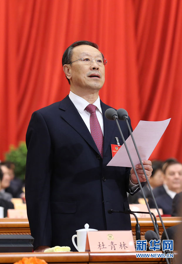 ??? 3月3日,中國人民政治協商會議第十二屆全國委員會第四次會議在北京人民大會堂開幕。杜青林主持開幕會。??新華社記者 龐興雷 攝