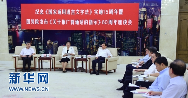 劉延?xùn)|在紀(jì)念《國(guó)家通用語言文字法》實(shí)施15周年暨國(guó)務(wù)院發(fā)布《關(guān)于推廣普通話的指示》60周年座談會(huì)上強(qiáng)調(diào)