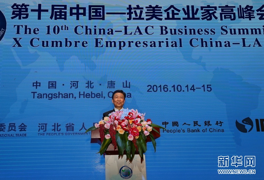 10月14日,第十屆中國-拉美企業家高峰會在河北唐山舉行,中國國家副主席李源潮出席開幕式并致辭。 新華社記者楊世堯攝