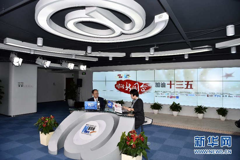 2016年3月13日,全國政協委員,中國航天科工集團公司副總經理魏毅寅做客新華網兩會訪談直播間。圖為魏毅寅在訪談現場。新華網 付宇鵬 攝
