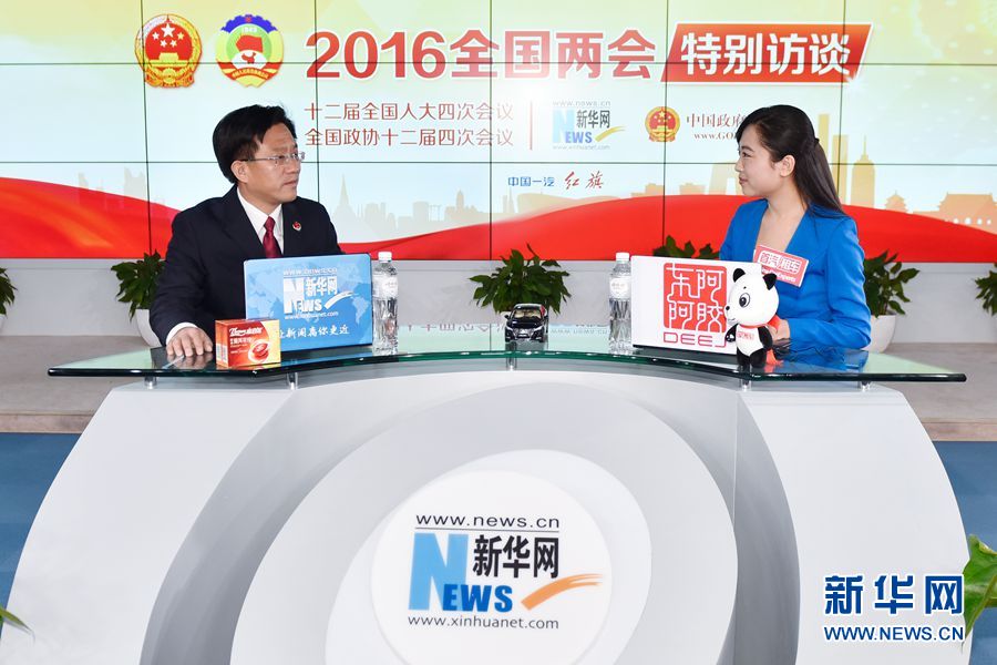 ????2016年3月13日,最高人民檢察院辦公廳主任、新聞辦主任王松苗做客新華網兩會訪談直播間。圖為王松苗回答主持人提問。新華網 付宇鵬 攝