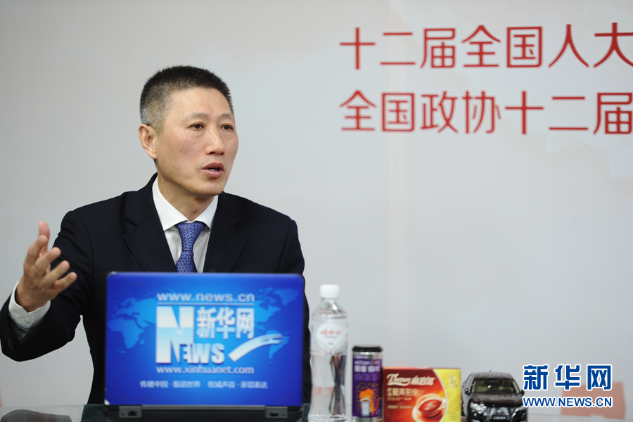 ??? 2016年3月13日,全國人大代表,煙臺張裕葡萄釀酒股份有限公司總經理周洪江做客新華網兩會訪談。圖為周洪江在訪談現場。新華網 盧志佳 攝