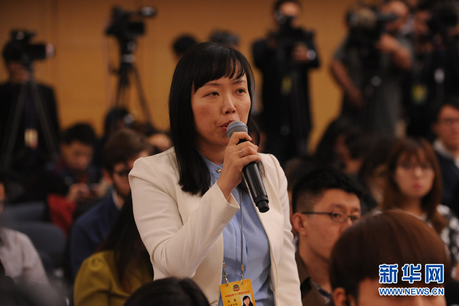 十二屆全國人大四次會議新聞中心于3月14日(星期一)10時在梅地亞中心多功能廳舉行記者會,邀請交通運輸部部長楊傳堂、交通運輸部運輸服務司司長劉小明、北京交通發展研究中心主任郭繼孚就“深化出租汽車改革與發展”的相關問題回答中外記者的提問。圖為光明日報、光明網記者提問。新華網/中國政府網 陳杰 攝