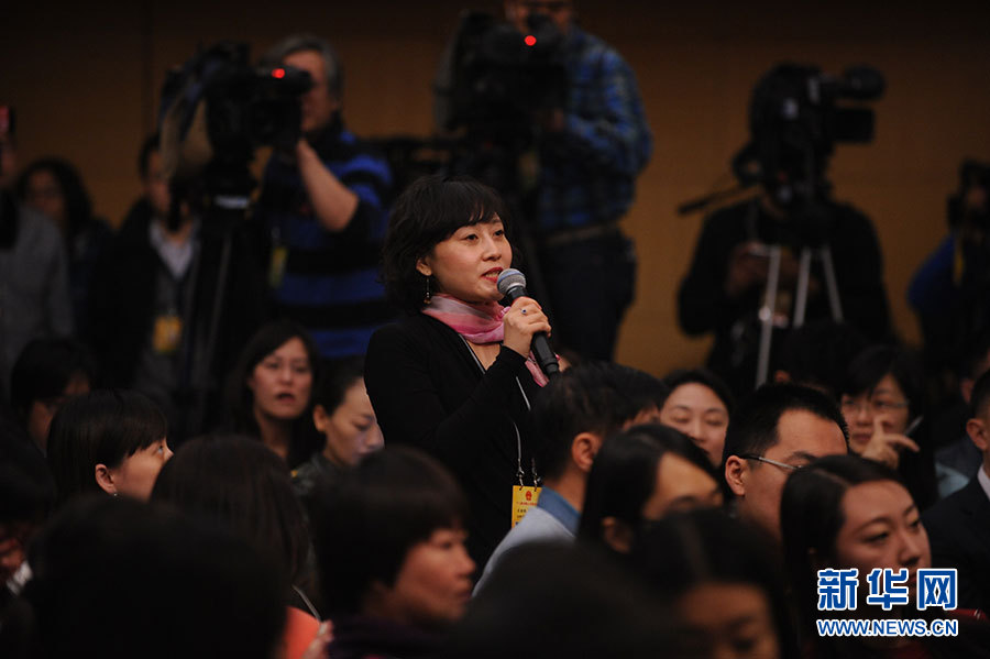 十二屆全國人大四次會議新聞中心于3月15日(星期二)10時在梅地亞中心多功能廳舉行記者會,邀請住房和城鄉建設部部長陳政高、副部長陸克華、副部長倪虹就“棚戶區改造和房地產工作”的相關問題回答中外記者的提問。圖為現場記者提問。新華網/中國政府網 陳杰 攝