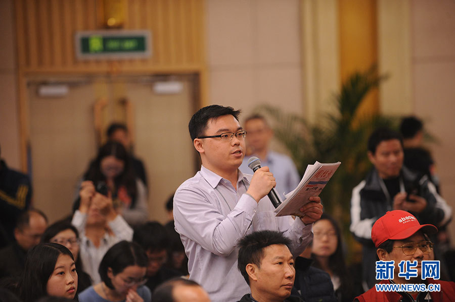 十二屆全國人大四次會議新聞中心于3月15日(星期二)10時在梅地亞中心多功能廳舉行記者會,邀請住房和城鄉建設部部長陳政高、副部長陸克華、副部長倪虹就“棚戶區改造和房地產工作”的相關問題回答中外記者的提問。圖為團結報、團結網記者提問。新華網/中國政府網 陳杰 攝