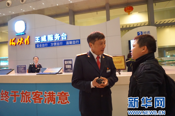 春運(yùn)期間,火車站客流量陡增,在擁擠的人潮中,藏藍(lán)色的身影會(huì)讓旅客的內(nèi)心平添一份安定。“您好,請(qǐng)問(wèn)有什么可以幫您”,“您這趟車快到檢票時(shí)間了,2號(hào)進(jìn)站口人稍微少一點(diǎn)”,“退票請(qǐng)帶身份證到5號(hào)窗口”。兩小時(shí)下來(lái),這樣的話王威重復(fù)了成百上千次,手上水杯里的水卻幾乎未少。