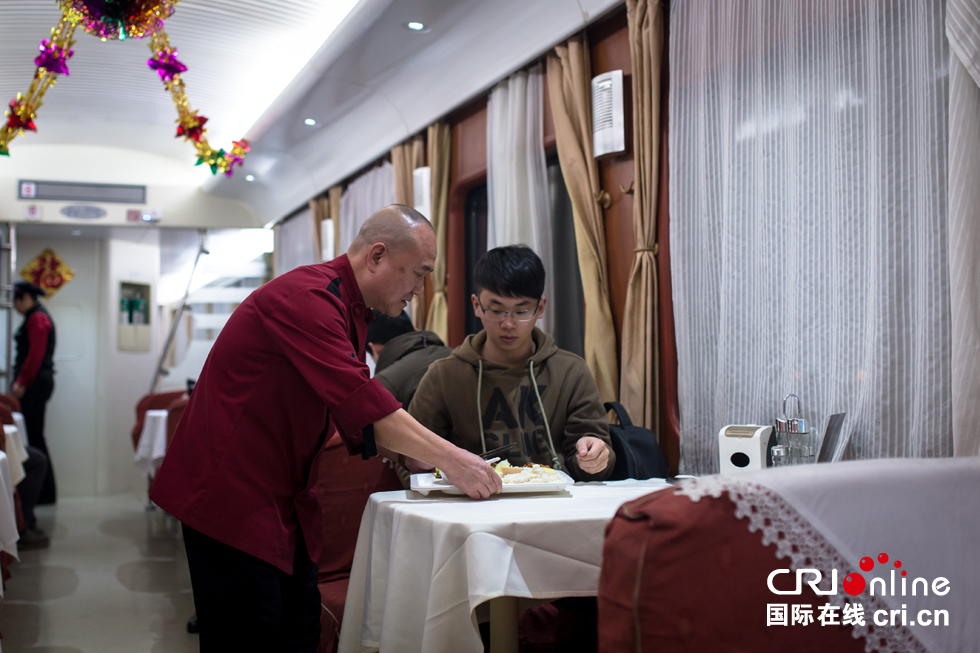 餐車工作人員一共5個名,廚師3人,服務員2人。忙不過來的時候白師傅也會充當服務員為旅客上菜。他說:“我們這趟車晚上5點多從杭州出發,這個時間段屬于飯點兒,服務員經常需要推著裝有盒飯的小車到各個車廂去,所以人手不足的時候誰有時間誰出去給旅客上菜?!?/p>