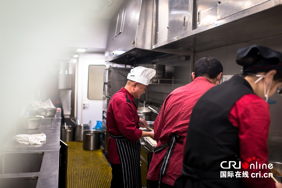 白振慶師傅說餐車上的廚師必須要手腳麻利,旅客可以在餐廳里久等一些,但是在餐車吃飯的都是急茬兒的。白師傅1980年開始在餐車工作,今年是他的第37個春運,在這37個春運中只有今年的除夕夜是在家過的。白師傅說在家過年當然高興,不過在車上和旅客一起過年,為旅客做一頓可口的年夜飯更是一種責任。