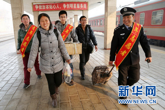 2月12日,侯馬站派出所民警為進出站旅客提供幫助。 新華網 田明 攝