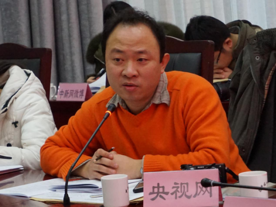 圖為央視網記者郭城在采訪座談會現場提問。中國網信網 陳麗 攝