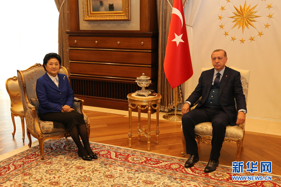 ????4月18日,土耳其總統埃爾多安在安卡拉會見中國國務院副總理劉延東。 新華社記者 秦彥洋攝
