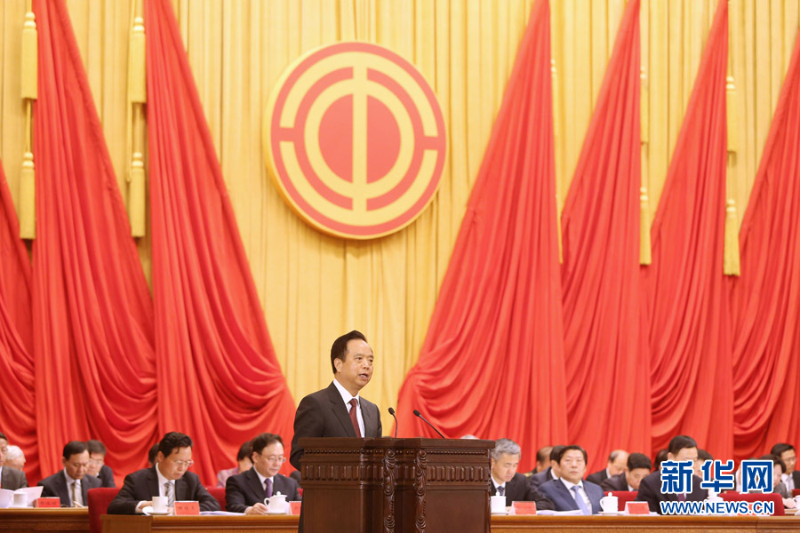 4月27日,慶祝“五一”國際勞動節暨全國五一勞動獎和全國工人先鋒號表彰大會在北京人民大會堂舉行。中共中央政治局委員、中華全國總工會主席李建國出席大會并講話。新華社記者 才揚 攝