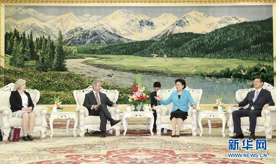 9月11日,國(guó)務(wù)院副總理劉延?xùn)|在北京人民大會(huì)堂會(huì)見(jiàn)出席全球音樂(lè)院校校長(zhǎng)交流季的中外校長(zhǎng)。 新華社記者 丁林 攝