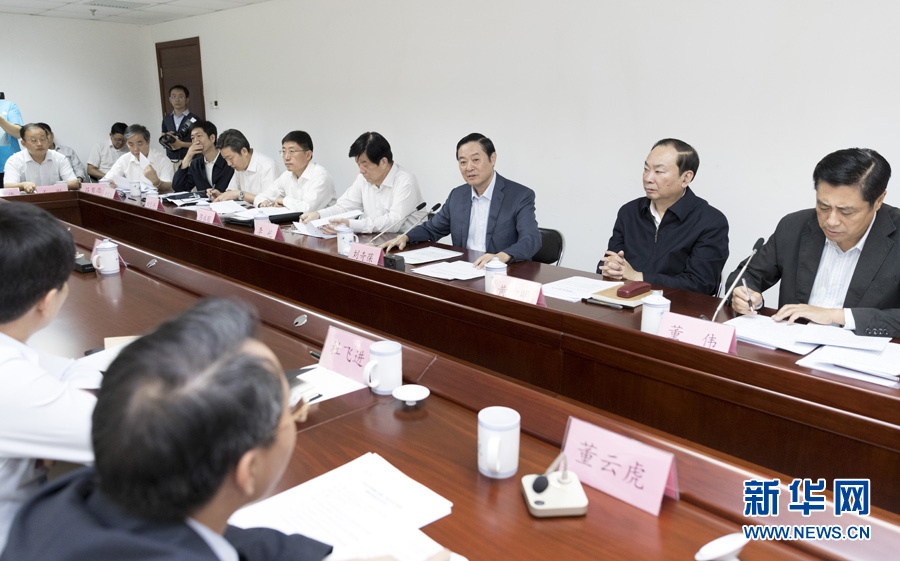 9月22日,中共中央政治局委員、中央書記處書記、中宣部部長劉奇葆在北京調研京劇像音像工程情況。這是劉奇葆與有關方面負責同志座談交流。新華社記者 丁海濤 攝