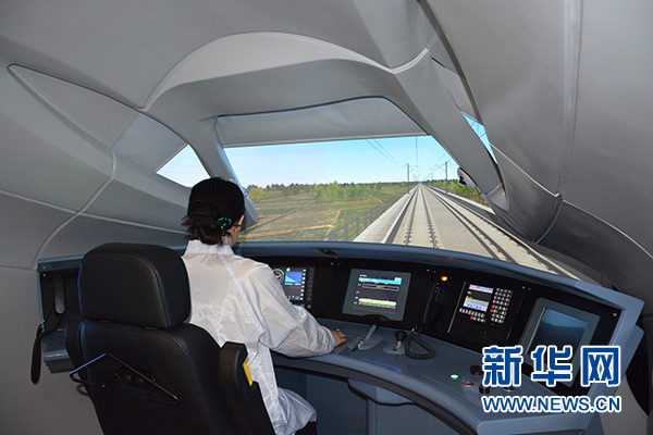 在中國通號CTCS-3實驗室體驗高鐵貼地“飛行”。據(jù)工作人員介紹,該實驗室采用半實物仿真建模方法,通過上萬公里高鐵工程的現(xiàn)場驗證,仿真平臺的可信度達(dá)到國際一流。新華網(wǎng)陳淑君攝