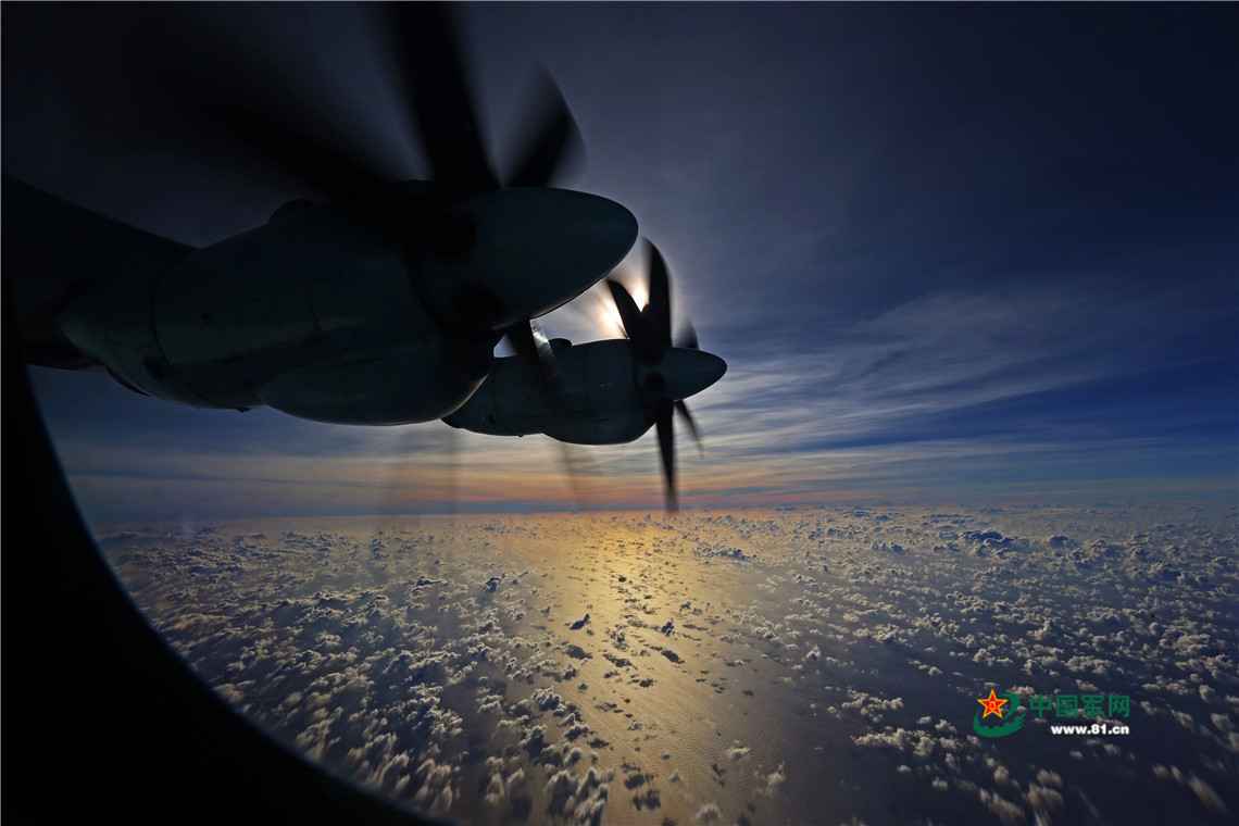 南海上空白云朵朵,運-9飛機在浩瀚的大海深處航行。劉暢 攝影