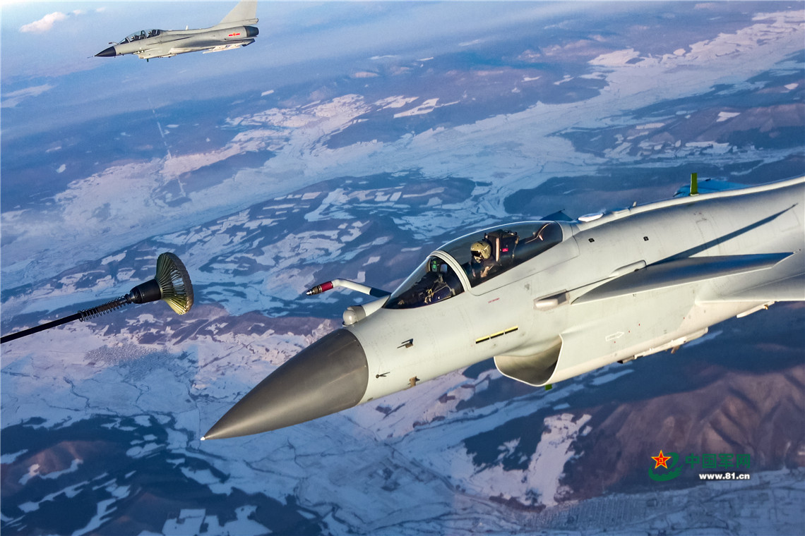 殲-10B戰機空中加油。