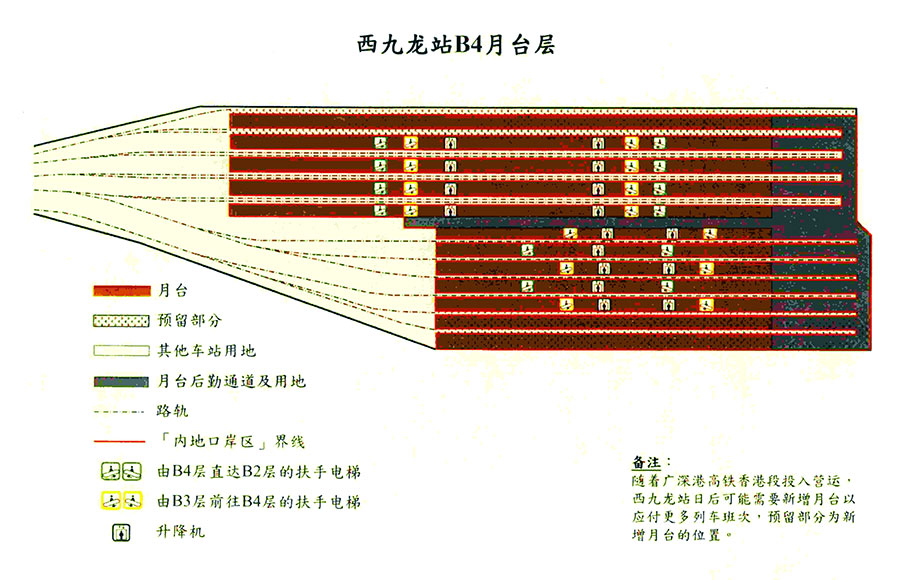 除上述納入內地口岸區范圍的場地和高鐵列車車廂,廣深港高鐵香港段的所有其他營運范圍及設施(包括石崗列車停放處、路軌及行車隧道)均不屬于內地口岸區范圍。
