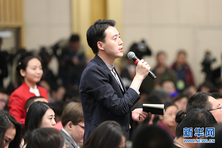 十二屆全國人大五次會議新聞中心于3月8日(星期三)10時在梅地亞中心多功能廳舉行記者會,邀請外交部部長王毅就“中國的外交政策和對外關系”的相關問題回答中外記者的提問。圖為中國新聞社記者提問。新華網/中國政府網 翟子赫 攝