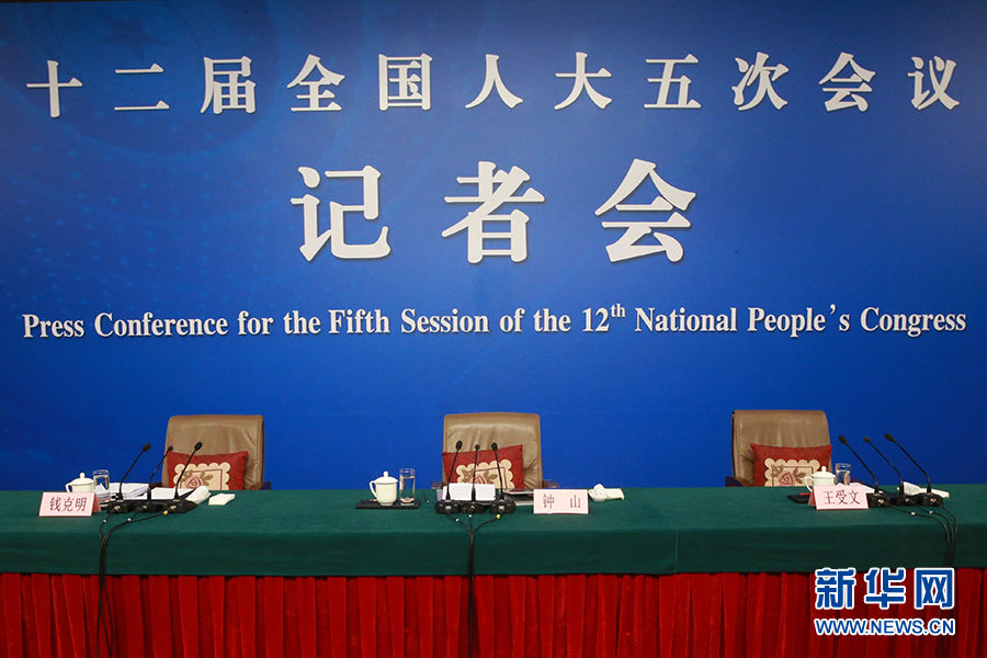 3月11日,十二屆全國人大五次會議新聞中心舉行記者會,主題是“改革開放調結構 創新驅動促發展”,商務部部長鐘山、副部長王受文、副部長錢克明出席并回答中外記者的提問。圖為記者會現場。 新華網/中國政府網 傅義洲 攝