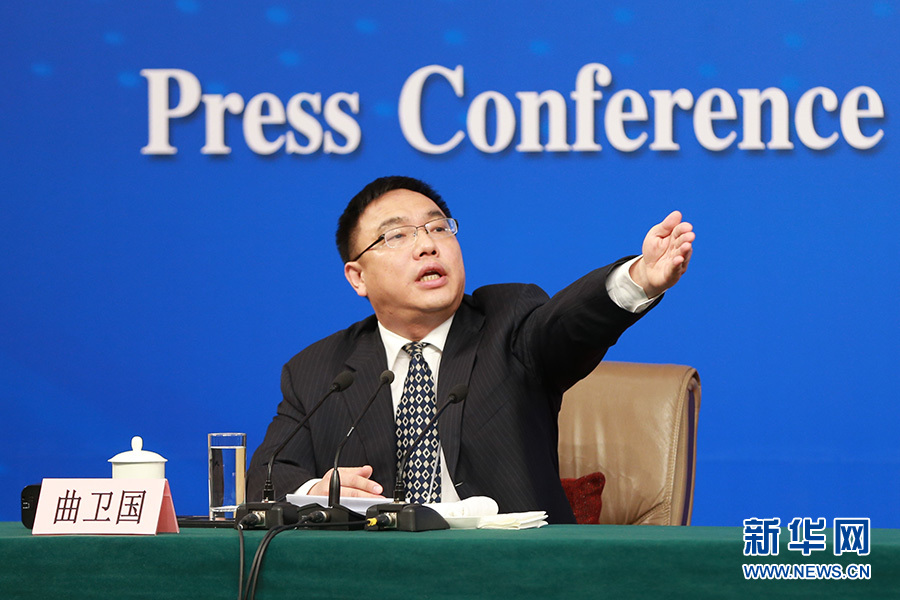 3月12日,十二屆全國人大五次會議新聞中心舉行記者會,邀請教育部部長陳寶生就“教育改革發展”的相關問題回答中外記者的提問。圖為記者會主持人曲衛國。新華網/中國政府網 傅義洲 攝