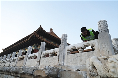 單霽翔表示,隨著故宮開放面積不斷擴大,清場人員也不斷增加。如今,每天700余名工作人員同時開始檢查,涵蓋故宮開放區域的每個角落。包括室外所有外露文物(如殿外銅缸)、附屬設施、屋脊門廊等,室內的所有文物、展室角落、展柜上下等。