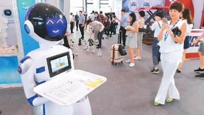 中國-東盟博覽會上的機器人服務員。新華社發