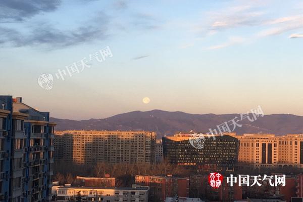 昨天,在強(qiáng)勁北風(fēng)的掃蕩下,京城“容顏煥發(fā)”,藍(lán)天明凈,流云迤邐,早晨上班時(shí)段,京城西邊月亮未落,東邊的太陽(yáng)便已冉冉升起,出現(xiàn)了日月同輝,美不勝收的景色。但氣溫較為低迷,監(jiān)測(cè)顯示,南郊觀象臺(tái)最高氣溫出現(xiàn)在下午15時(shí)26分,僅有0.5℃。