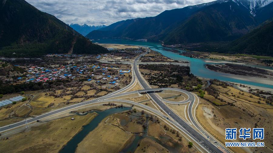 俯瞰西藏林芝境內的拉林高等級公路(2016年4月4日攝)。拉林高等級公路起于拉薩市,止于林芝巴宜區八一鎮。為把拉林高等級公路建設成為生態通道、綠色長廊、景觀大道,西藏自治區林業廳在科學指導和嚴格監管下,堅持不破壞、少擾動、多恢復原則,對拉林高等級公路邊坡進行綠化,種植草坪。新華社記者 普布扎西 攝
