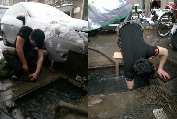 自來水工張威甩掉外套冒著風(fēng)雪搶修