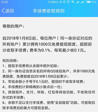 QQ錢(qián)包提現(xiàn)收取手續(xù)費(fèi)