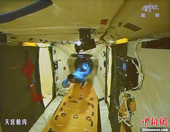 圖為在張曉光的協(xié)助下,聶海勝順利開啟并進(jìn)入天宮一號艙門(資料圖)。中新社發(fā) 秦憲安 攝
