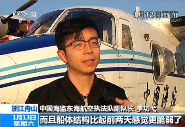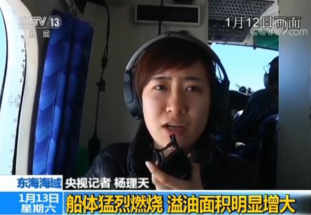 中國海監(jiān)東海航空?qǐng)?zhí)法隊(duì)副隊(duì)長 李功弋:通過這幾天的航空觀察,感覺這艘船火勢沒有很明顯的變化,船體結(jié)構(gòu)越來越脆弱了,碰撞的缺口越來越大了,可能是11日的爆炸所致。