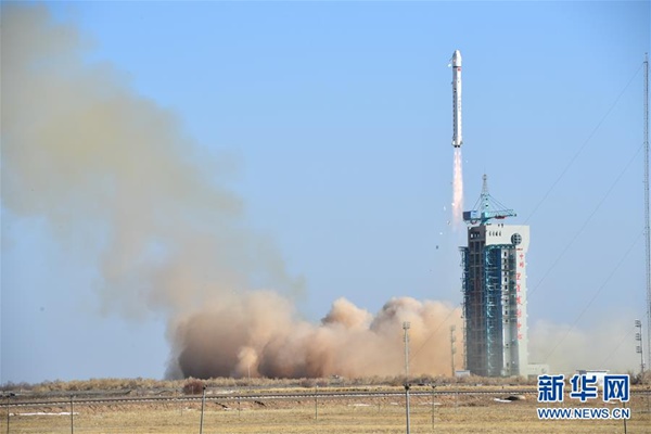 2018年1月13日15時10分,我國在酒泉衛星發射中心用長征二號丁運載火箭,成功將陸地勘查衛星三號發射升空,衛星進入預定軌道。新華社發(汪江波 攝)
