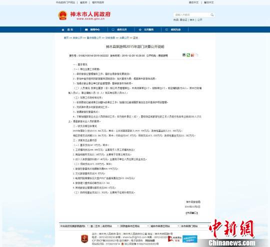 神木旅游局2015年部門決算公開說明。網(wǎng)頁截圖