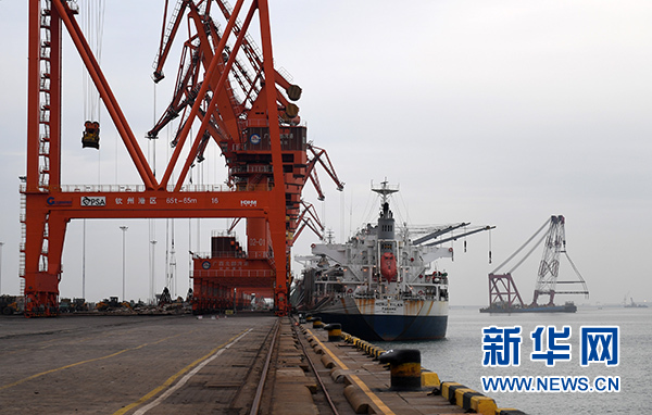 這是作業(yè)中的廣西欽州港(1月10日攝)。新華社記者 陸波岸 攝