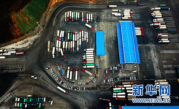1月16日,來自東盟國家的貨車在憑祥市邊境貿(mào)易監(jiān)管中心等候裝運(yùn)貨物。新華社記者 張愛林 攝