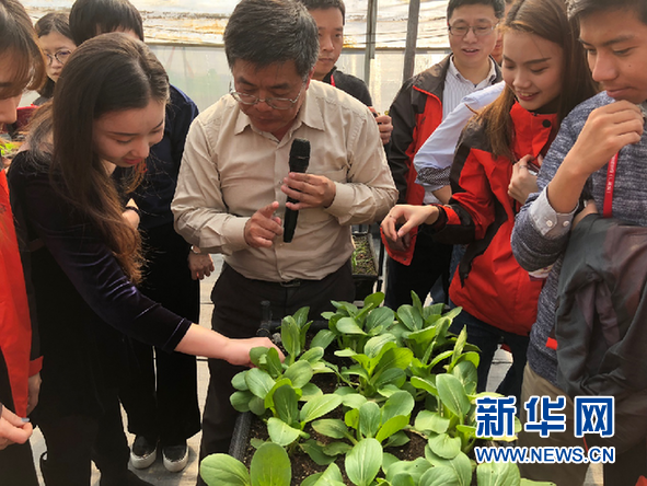 蔡海璋博士請記者們現場品嘗“零污染”青菜。新華網 卓越 攝