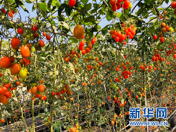 松樹崗村“空中田園”里正值采摘季的玉女番茄。 新華網 卓越 攝