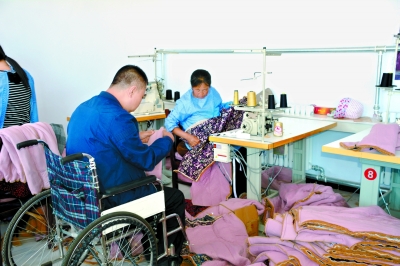 烏蘭察布市化德縣德包圖村一家“脫貧車間”里,正在幫助料理縫紉的殘疾人貧困戶王強(化名)高興地說:“每個‘脫貧車間’,政府都給投資15萬元作為啟動資金,用于購買縫紉機等設備和消防器材。我們殘疾人也可以不出家門實現就業啦。”