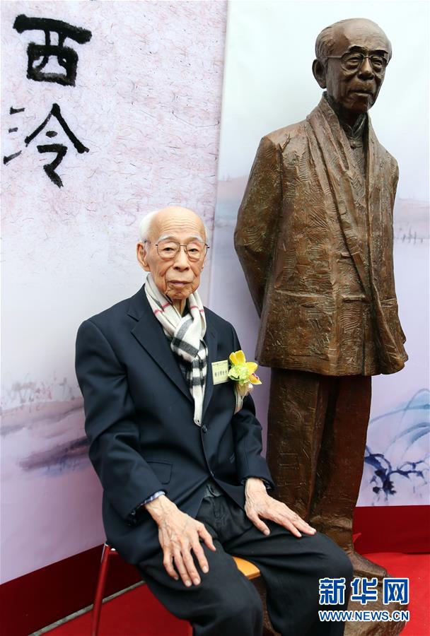 國(guó)學(xué)大師饒宗頤出席其銅像揭幕暨“藝聚西泠”展覽開(kāi)幕典禮(2012年12月14日攝)。新華社記者 李鵬 攝
