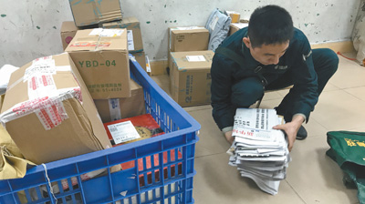 春節將至,又到了萬家團圓的日子。但環市西路投遞部有許多像羅金城一樣的年輕人,并沒有回家的打算。投遞部主任黃大兵表示:“每年過節前夕,都是我們業務最忙的時候,平時一天3000多件,現在要增加一倍多?!?/p>