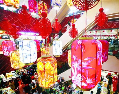 南京路一商店內(nèi)彩燈高掛,市民喜氣洋洋置辦年貨,一派歡樂景象。記者 邵劍平 攝