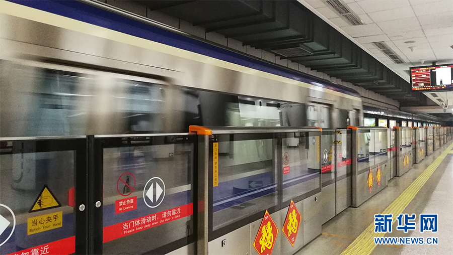 2018年2月15日,北京地鐵2號線屏蔽門上都貼上了“福”字,喜迎農歷新年。新華網 張明宇 攝