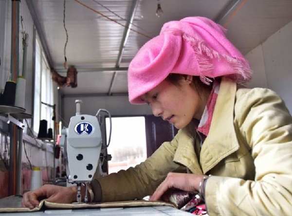記者在村民文昌多吉的作坊里看到,地上鋪滿待剪裁的布料,幾臺(tái)裁縫機(jī)整齊擺放著。冬日的暖陽(yáng)透過(guò)玻璃窗照射進(jìn)來(lái),多吉和妻子一人負(fù)責(zé)剪裁,一人負(fù)責(zé)縫紉。而平時(shí)他家有5個(gè)人做,最多的時(shí)候一天可掙1000元,相當(dāng)于過(guò)去種地一年的收入。